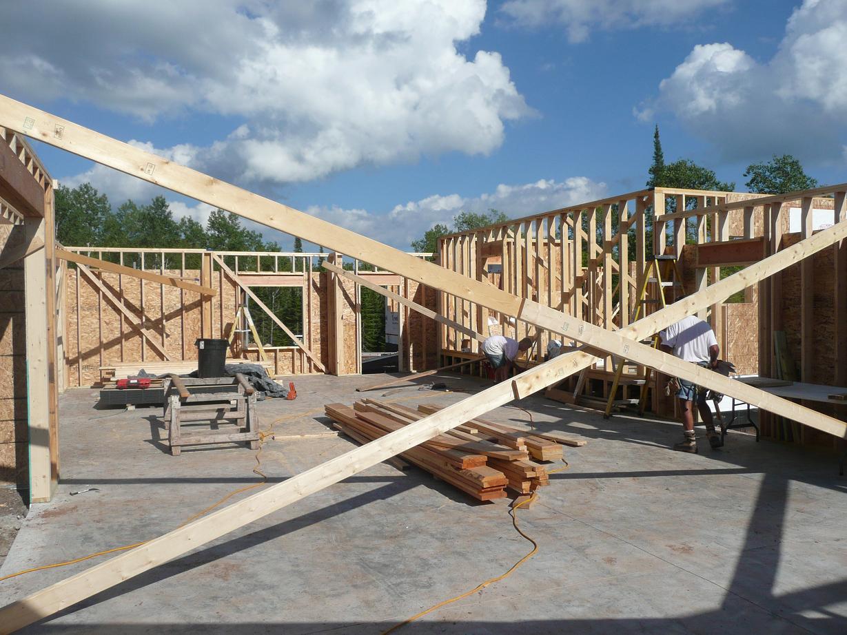 Here's some updated pictures. roof is nearly framed in at this point. Front porch as been poured. roofing has begun on the garage. It's looking more and more like a house.